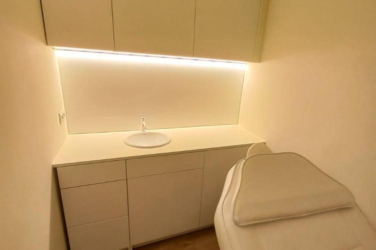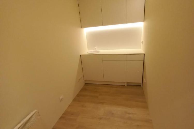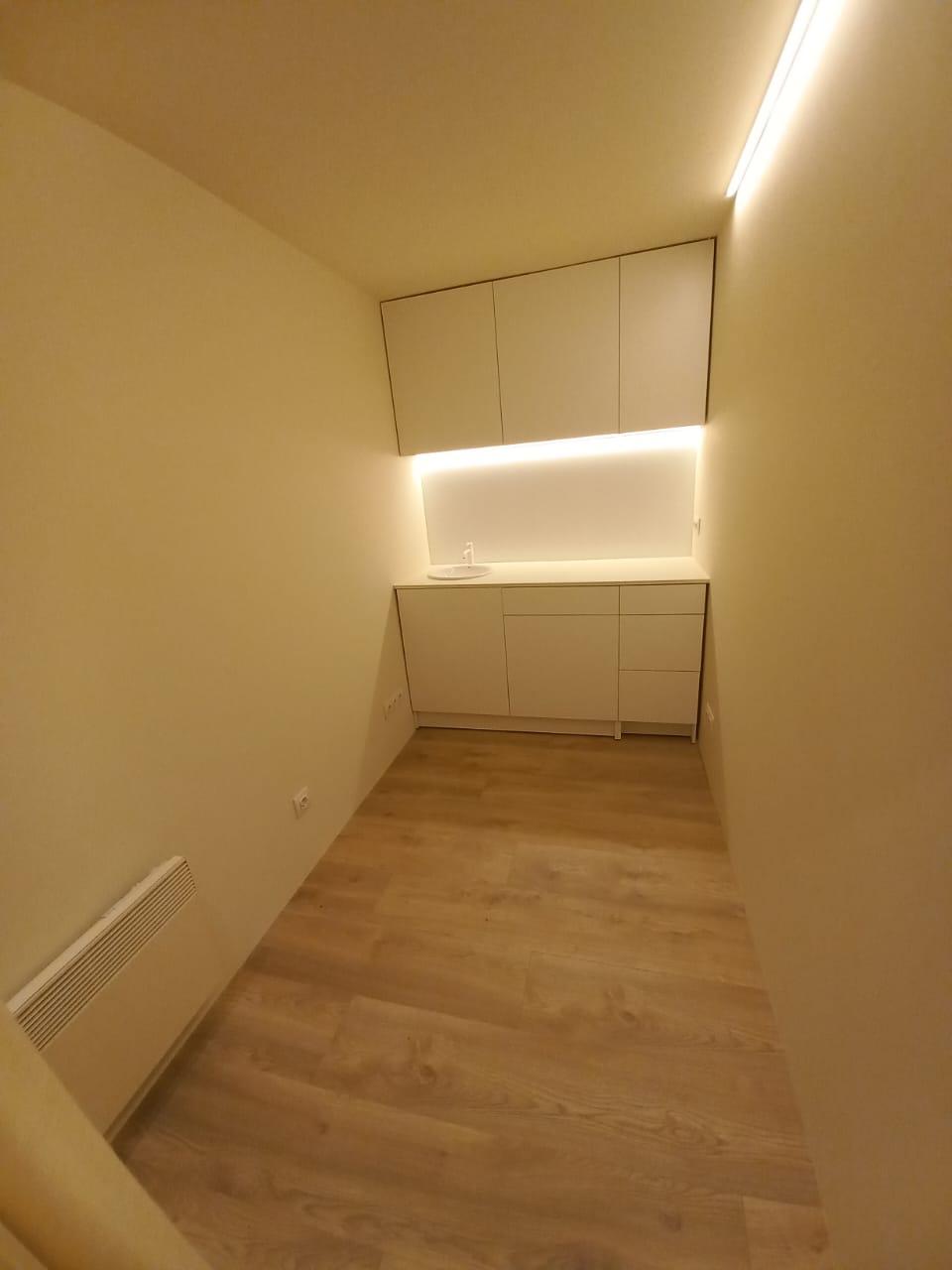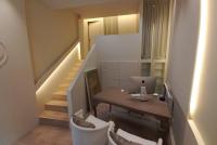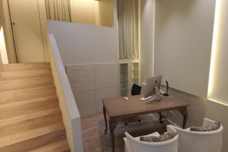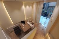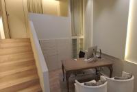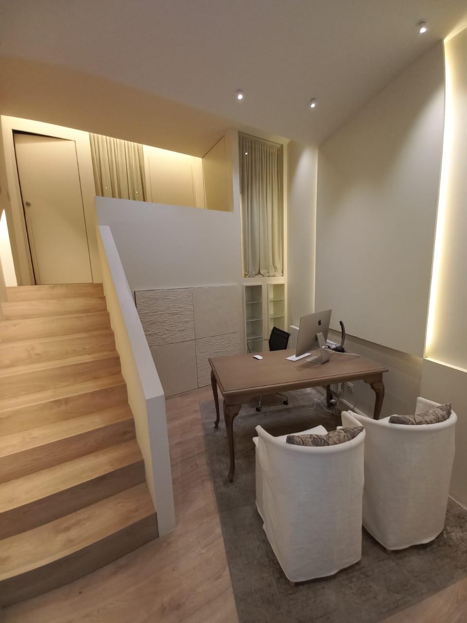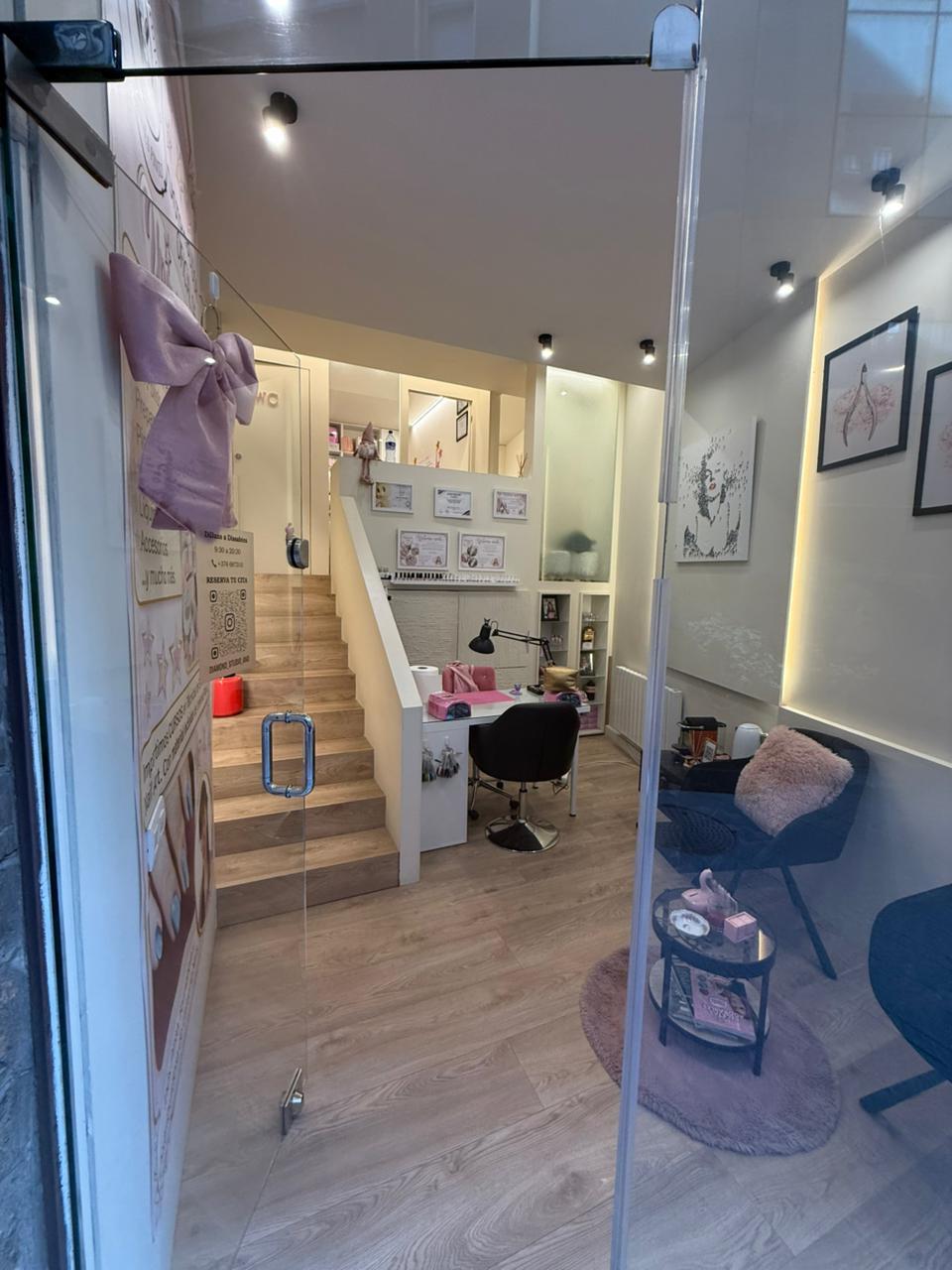 Te uns 38 m2 i actualment te un espai de recepció, dos zones de despatx o cabina i un bany.