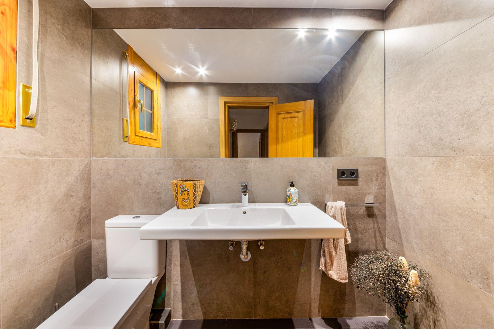 Disposa de garatge de 40m2 amb sala de caldera i ampli traster o sala polivalent, primeta planta amb gran saló amb llar de foc i sortida a terrassa, cuina independent, habitació habilitada com a despatx i ampli lavabo.