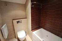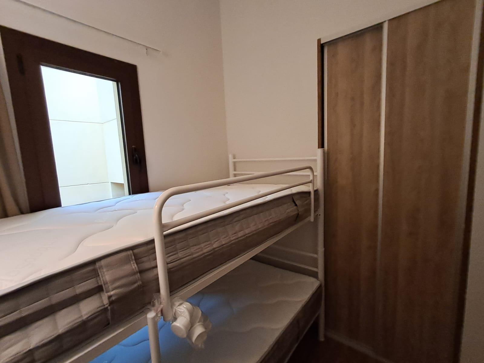 Té 70m2, amb dos habitacions, dos banys i saló amb cuina oberta.
