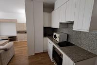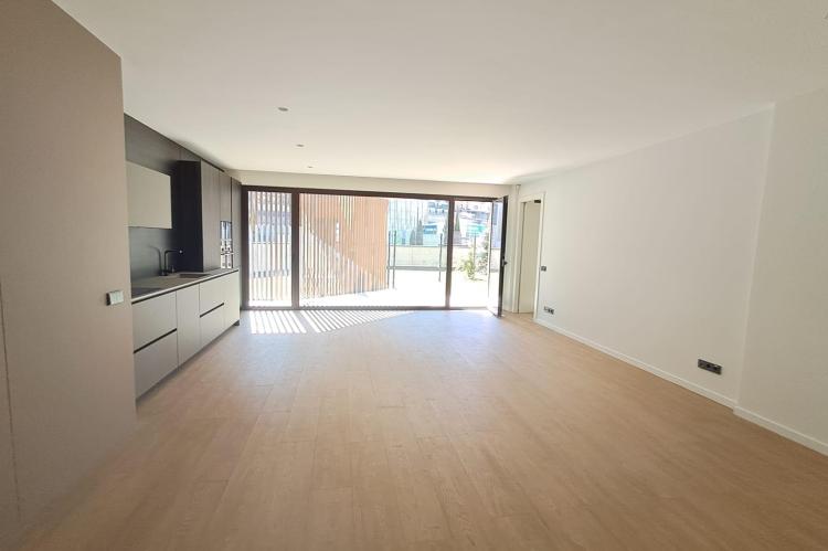 El pis té dos habitacions, un bany i cuina oberta al saló.